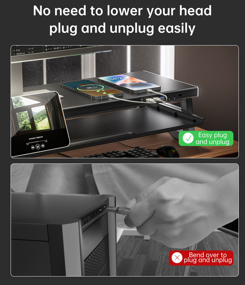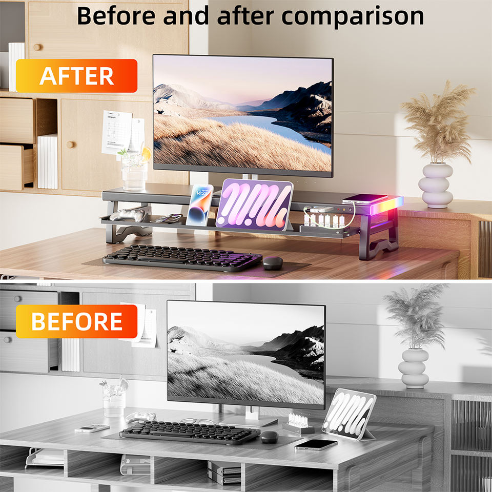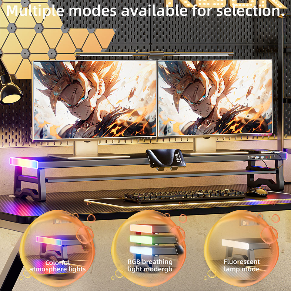 Support d'écran d'ordinateur double couche avec lumière respirante, USB 3.0 et extension de charge rapide, prenant en charge deux moniteurs