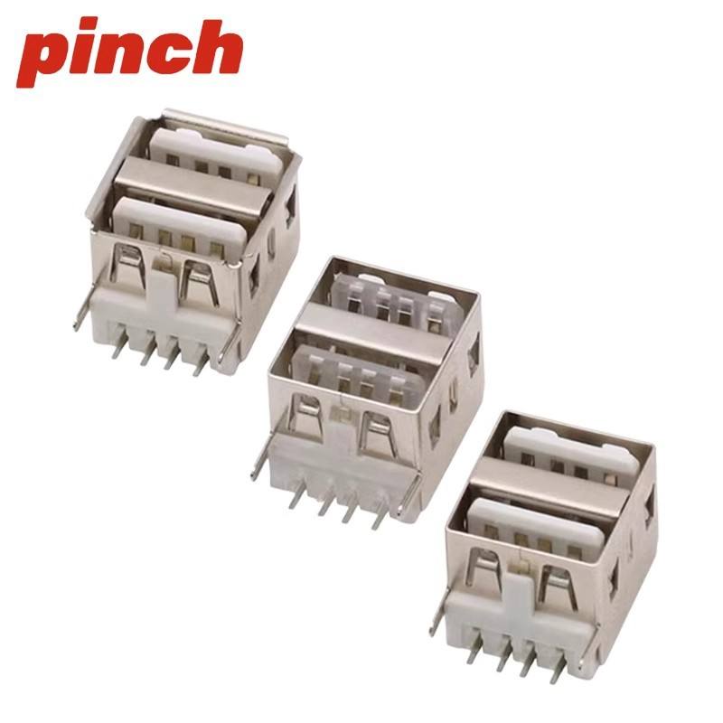Connecteur USB femelle double couche 2 ports, longueur 11,5 mm, montage sur circuit imprimé, type A, corps court à 90 degrés