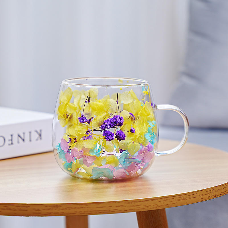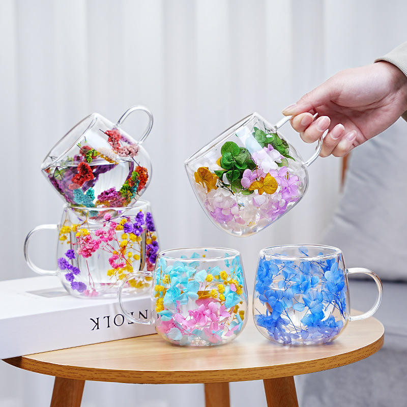 Tasse en verre double paroi, design élégant, tasse à thé en verre borosilicate de haute qualité, tasse à fleurs double paroi