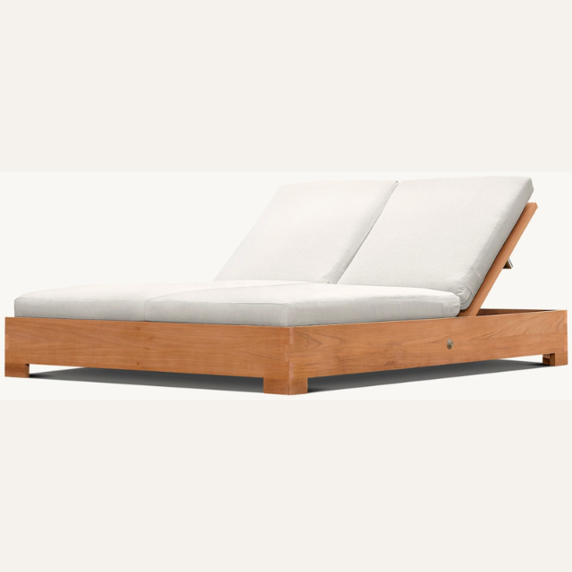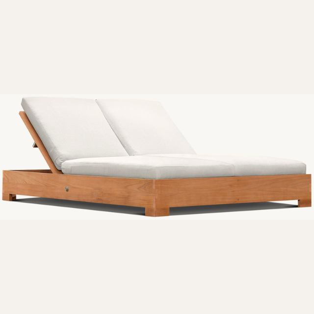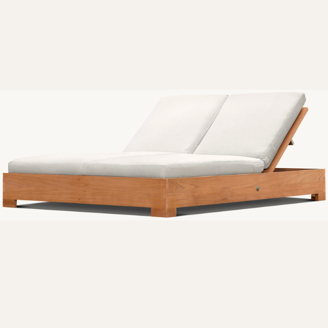 Double lounge chair made of teak wood with soft foam, suitable for couples who are relaxing and resting use at the spa and beach