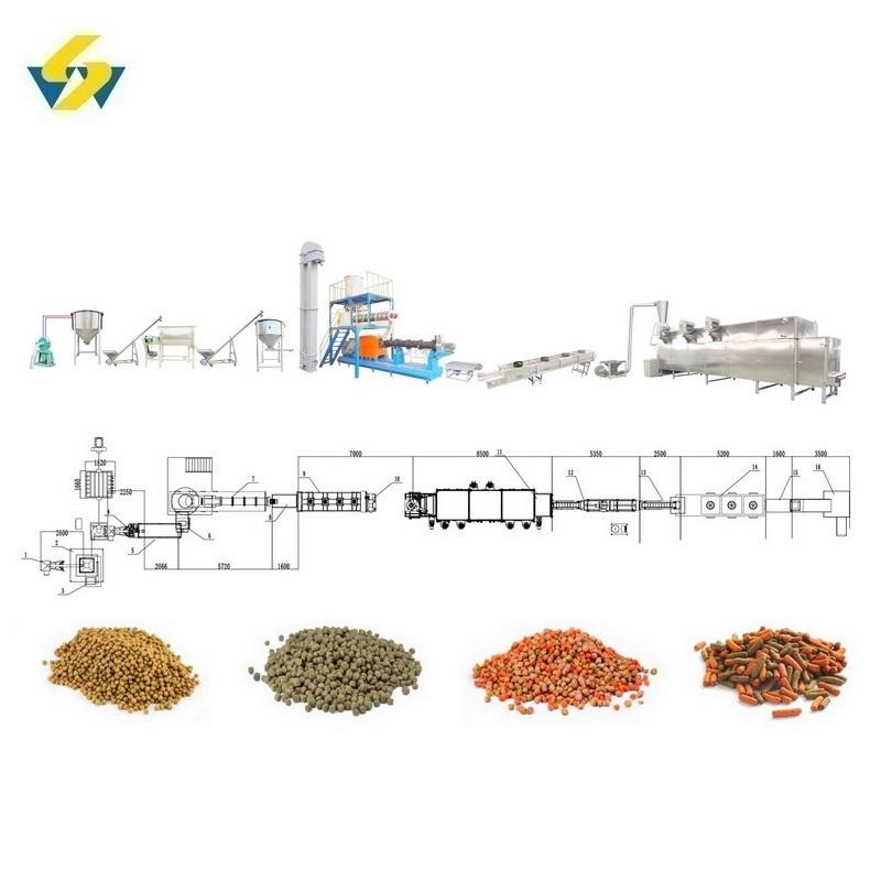 Machine d'alimentation flottante à double arbre, extrudeuses, équipement de séchage et d'emballage pour la production de granulés d'aliments pour poissons