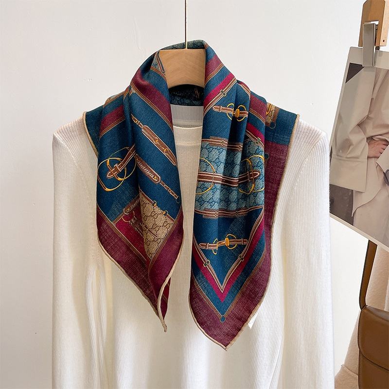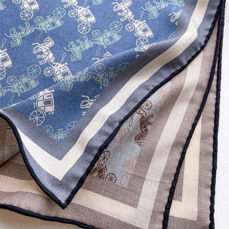 Écharpe carrée double face en soie de mûrier et laine, imprimée, élégante, de luxe léger, pour femme, 70 cm, couleurs contrastées