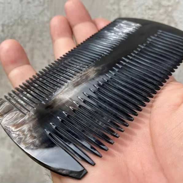 Peigne à barbe noire fait à la main de haute qualité HF Crafts Peigne en corne de style animal double face pour un usage domestique Poli Dernier design Bas