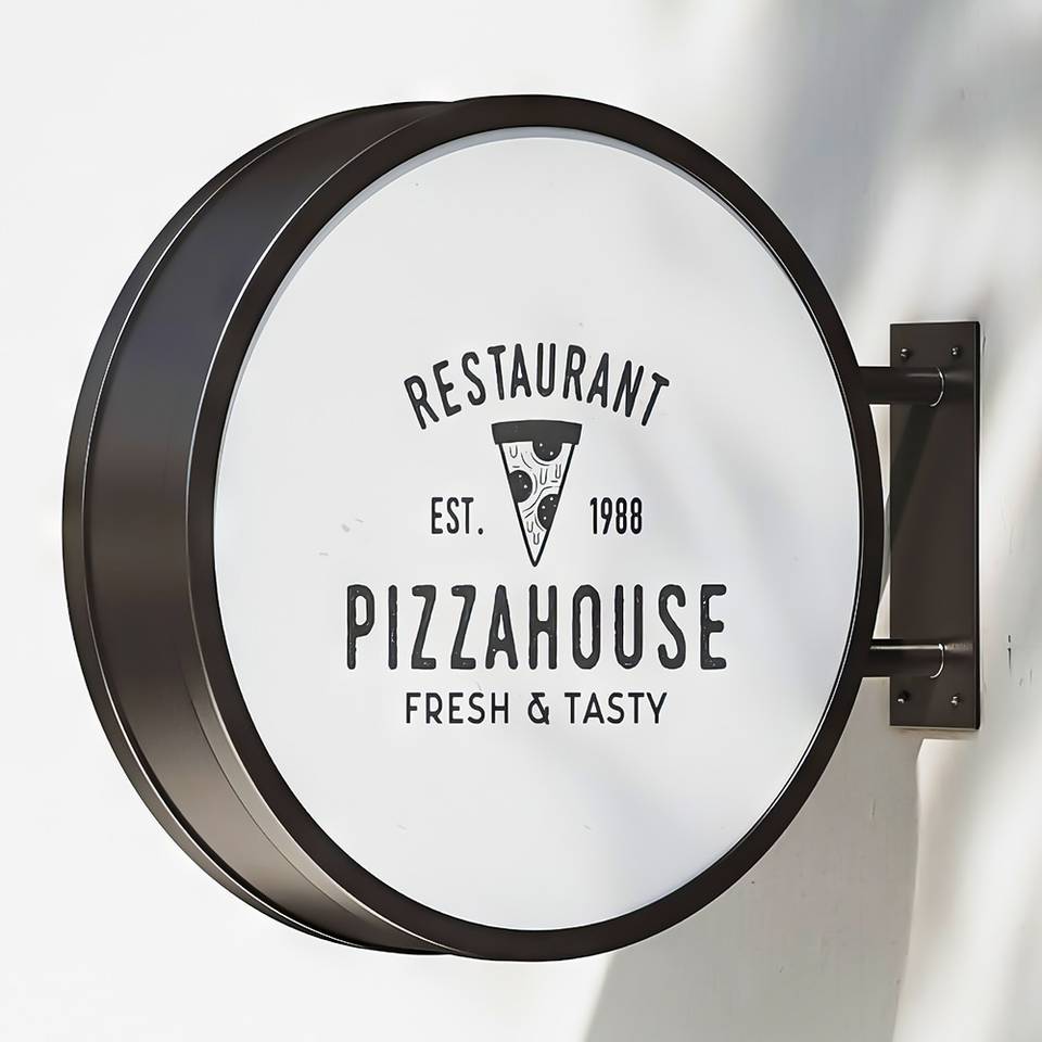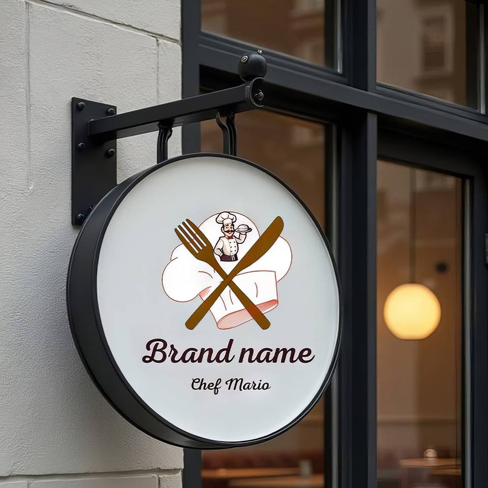 Enseigne lumineuse LED ronde double face, murale, pour extérieur, avec logo circulaire illuminé pour boutique, café, devanture de magasin.