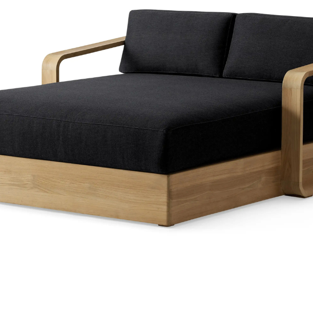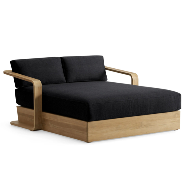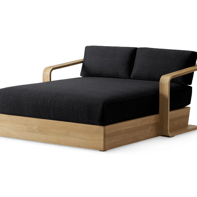 Double sun lounger furniture for relaxing in a minimalist style with soft cushions that are comfortable for outdoor use