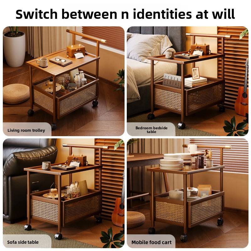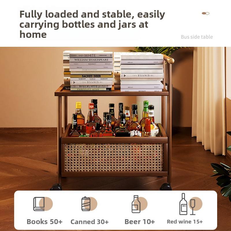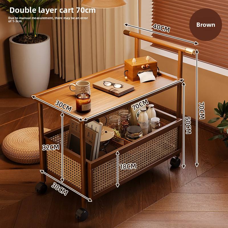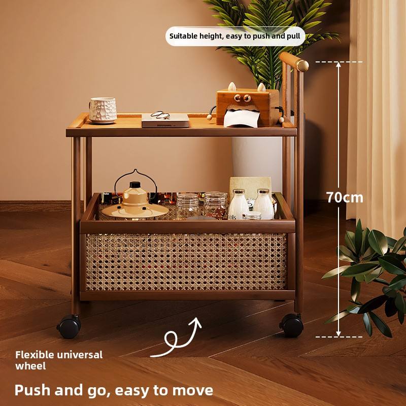 Étagère de rangement alimentaire à double niveau pour salon, chariot roulant en bambou sur pied avec roulettes, étagère en bois de bambou