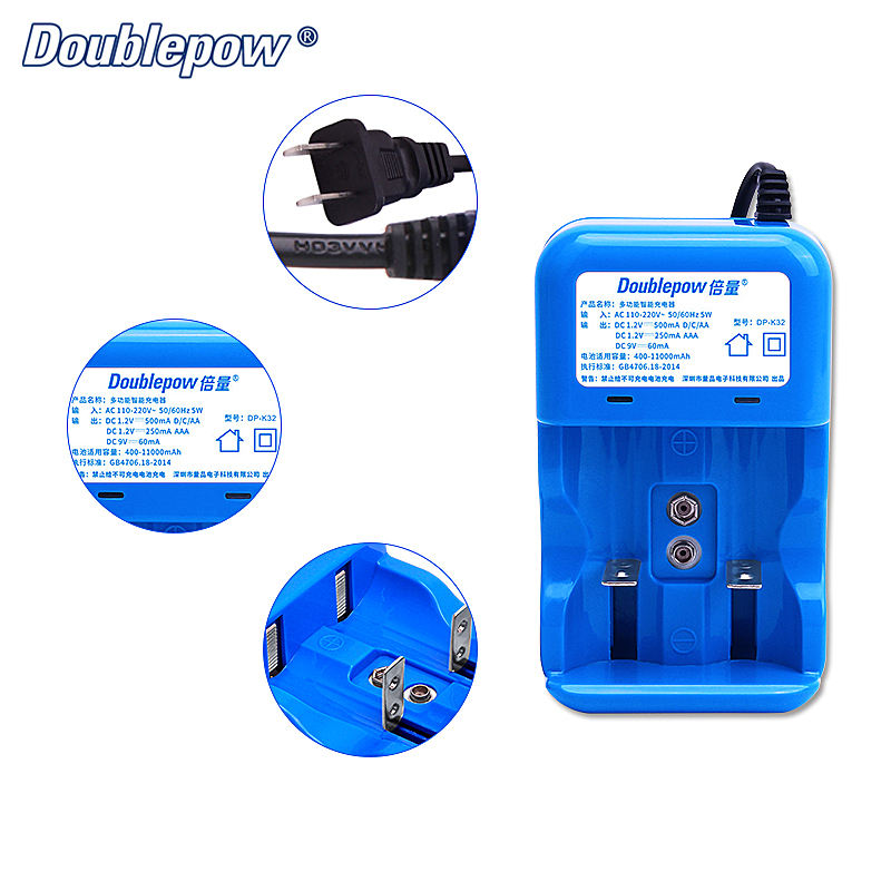 Output:DC 1.2V 500mAh D/C/AA DC 1.2V 250mAh AAA DC 9V 60mAh