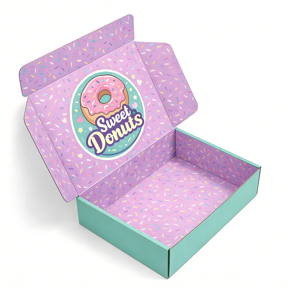 Boîtes d'emballage alimentaire pour beignets en carton ondulé B/E, option auto-scellante, fabricant de boîtes d'expédition