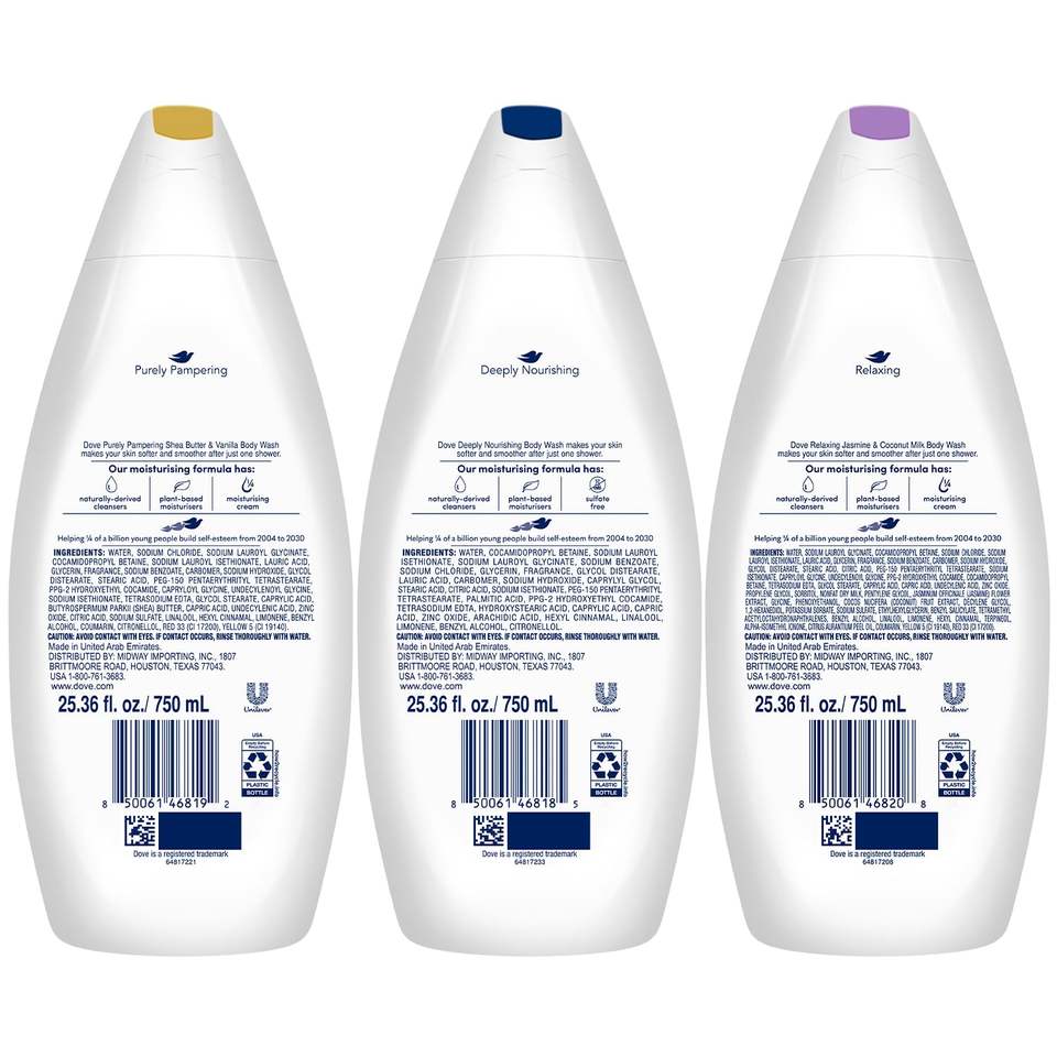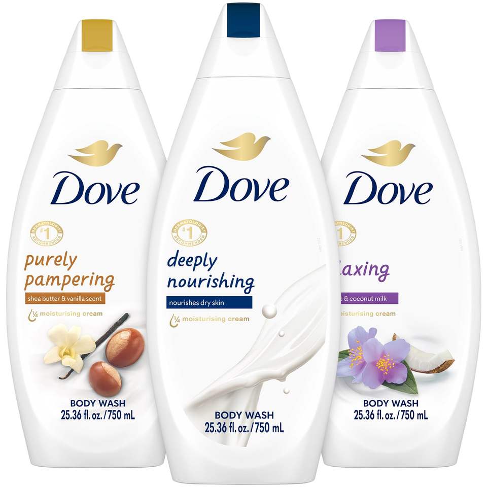 Spray lavant pour le corps Dove jetable, lot de 3, soin relaxant et nourrissant en profondeur pour une peau plus douce et plus lisse, 25,3 oz chacun