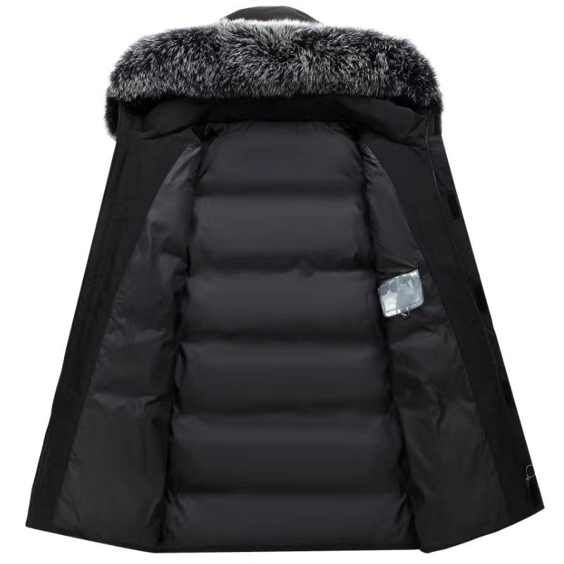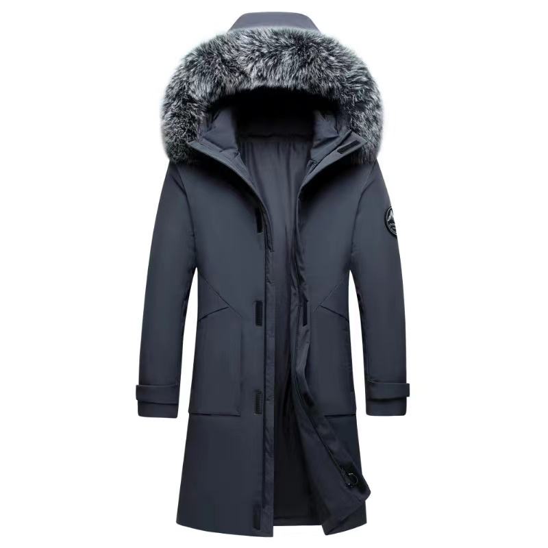 Veste en duvet homme long nouveau col fourrure à capuche épaissi manteau homme doudoune