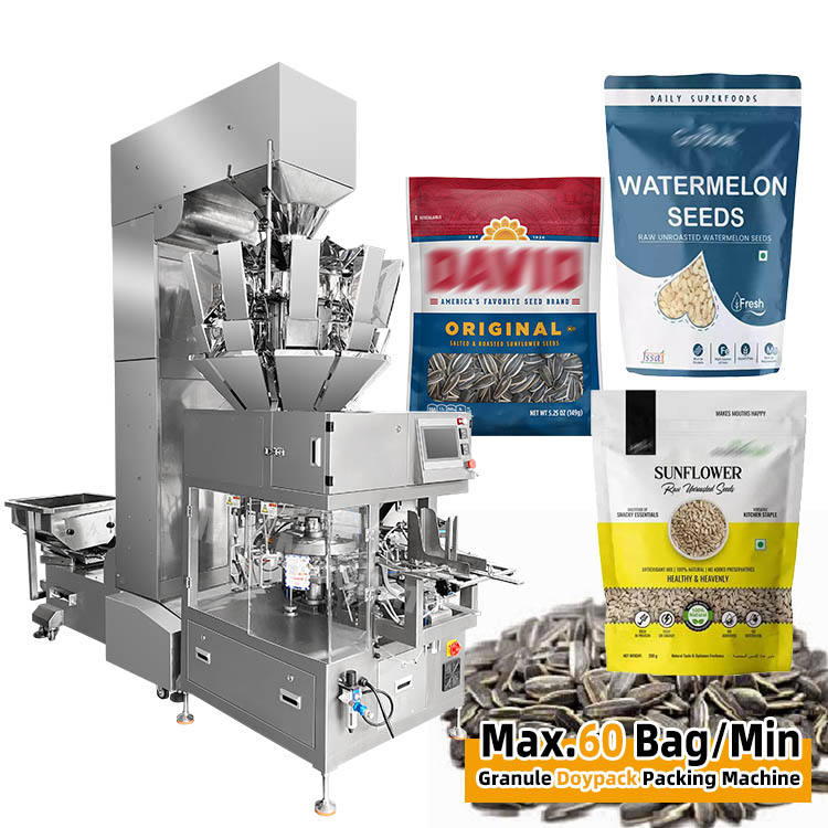 Machine d'emballage Doypack automatique pour sachets préformés à fermeture éclair, pour l'emballage de melons et de graines de tournesol
