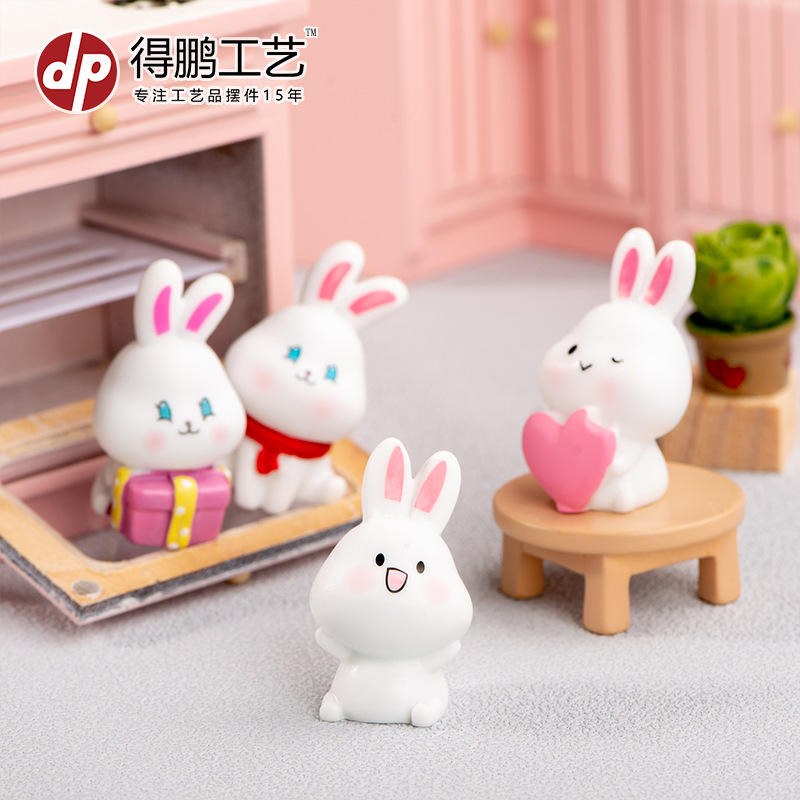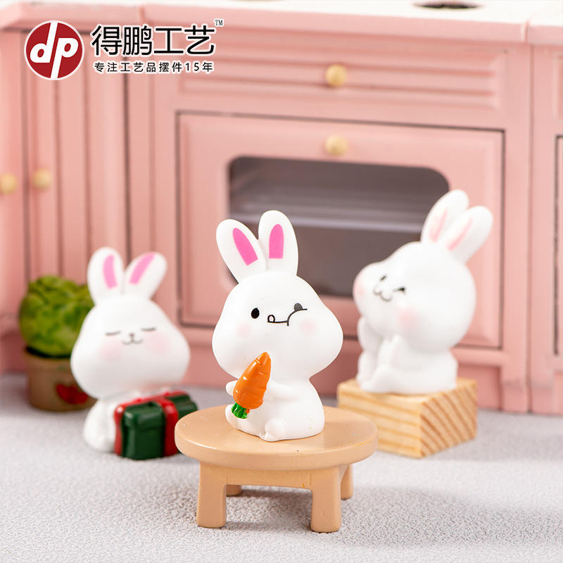 Figurine en résine de lapin miniature Dp, décoration animale, artisanat, décoration de la maison, ornement de bureau