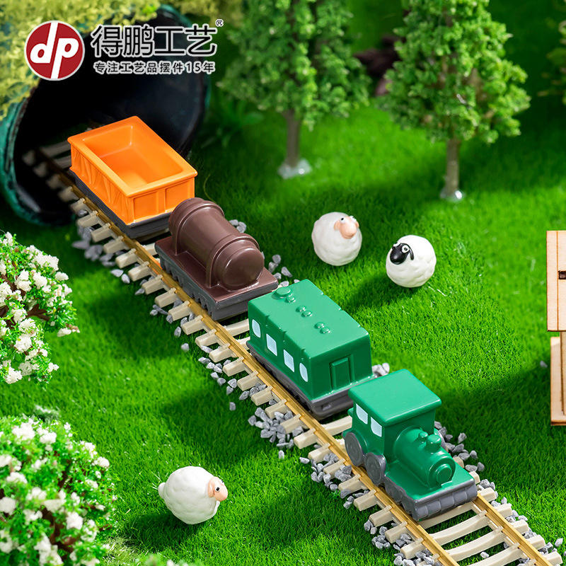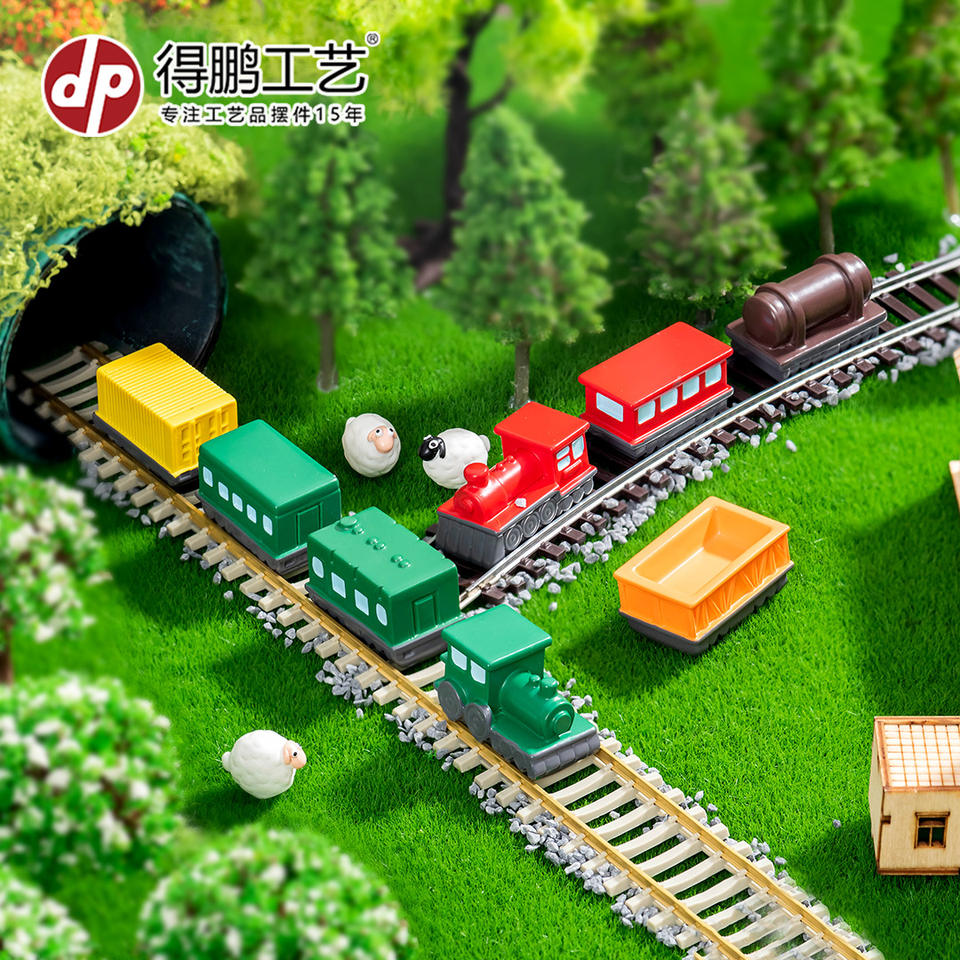 Dp – train miniature en résine, modèle artisanal, ornement décoratif pour la maison, affichage sur le bureau, design artistique de dessin animé