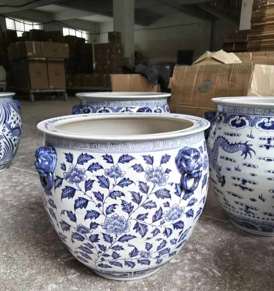 Dragon design bleu et blanc grand pot à bonsaï en céramique pot de jardin extérieur chinois
