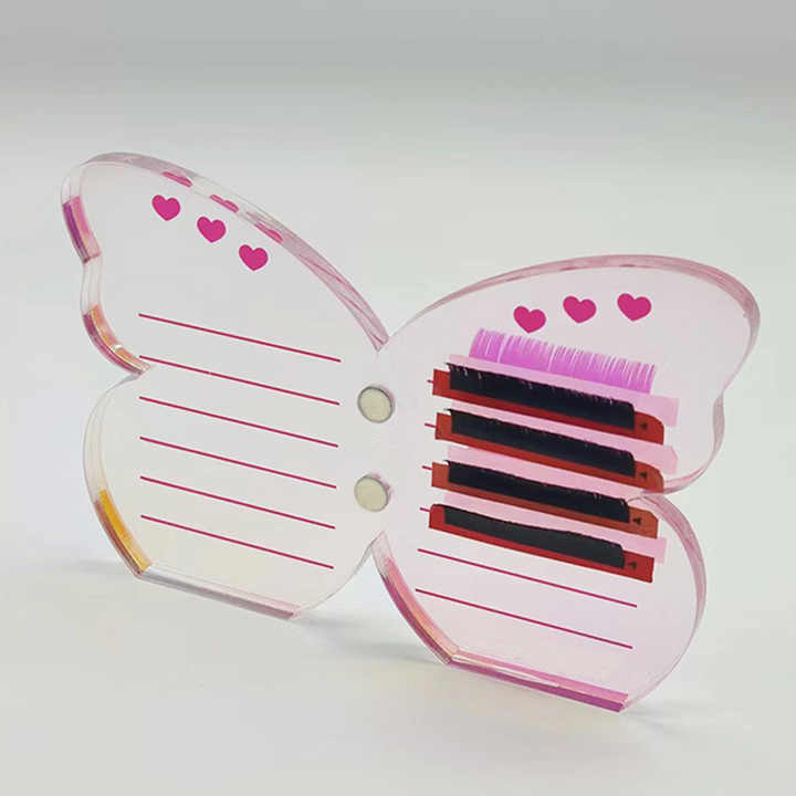 Dragon Nouveau Design, Tuile à cils personnalisée en acrylique, forme papillon et cœur, taille XL, rose irisé, professionnel, haute qualité, fabrication mécanique, noir