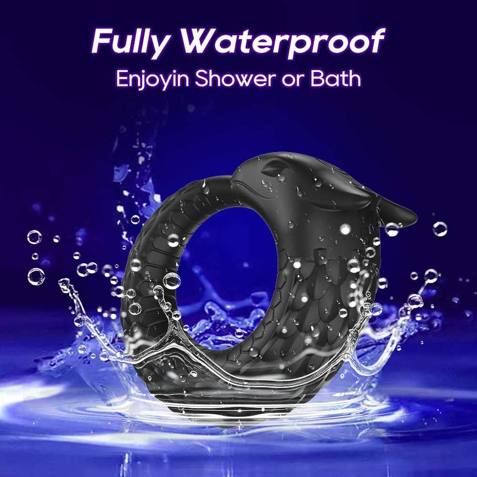 Anneau de retardement d'éjaculation Dragon Scale entièrement recouvert de caoutchouc, rechargeable, vibrant, télécommande, étanche, 10 modes de vibration, double