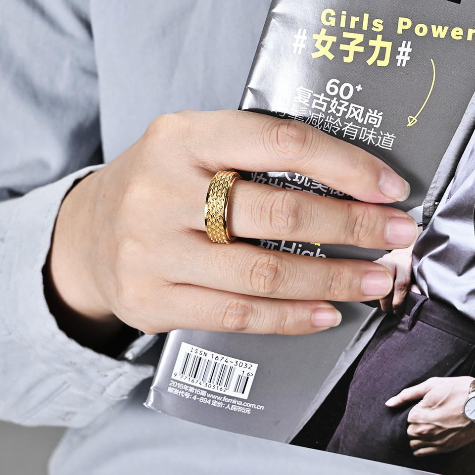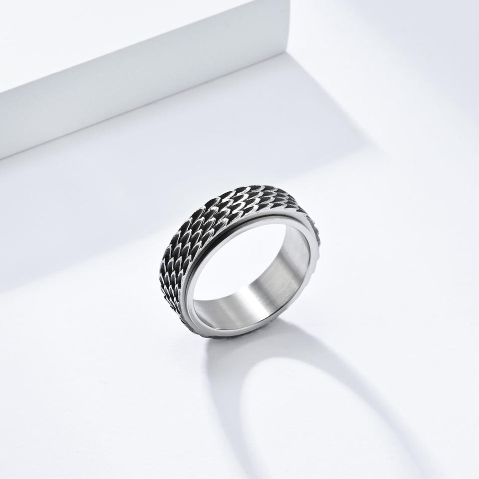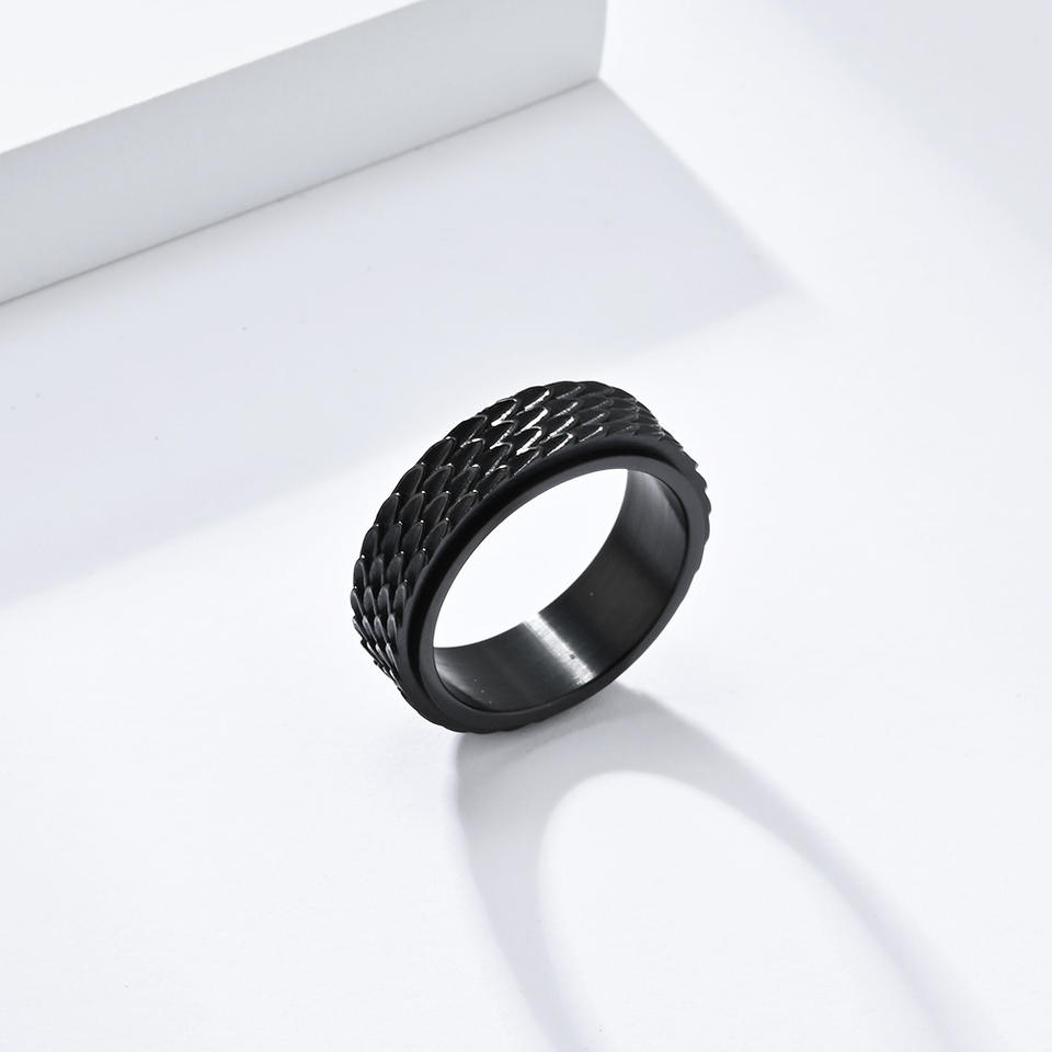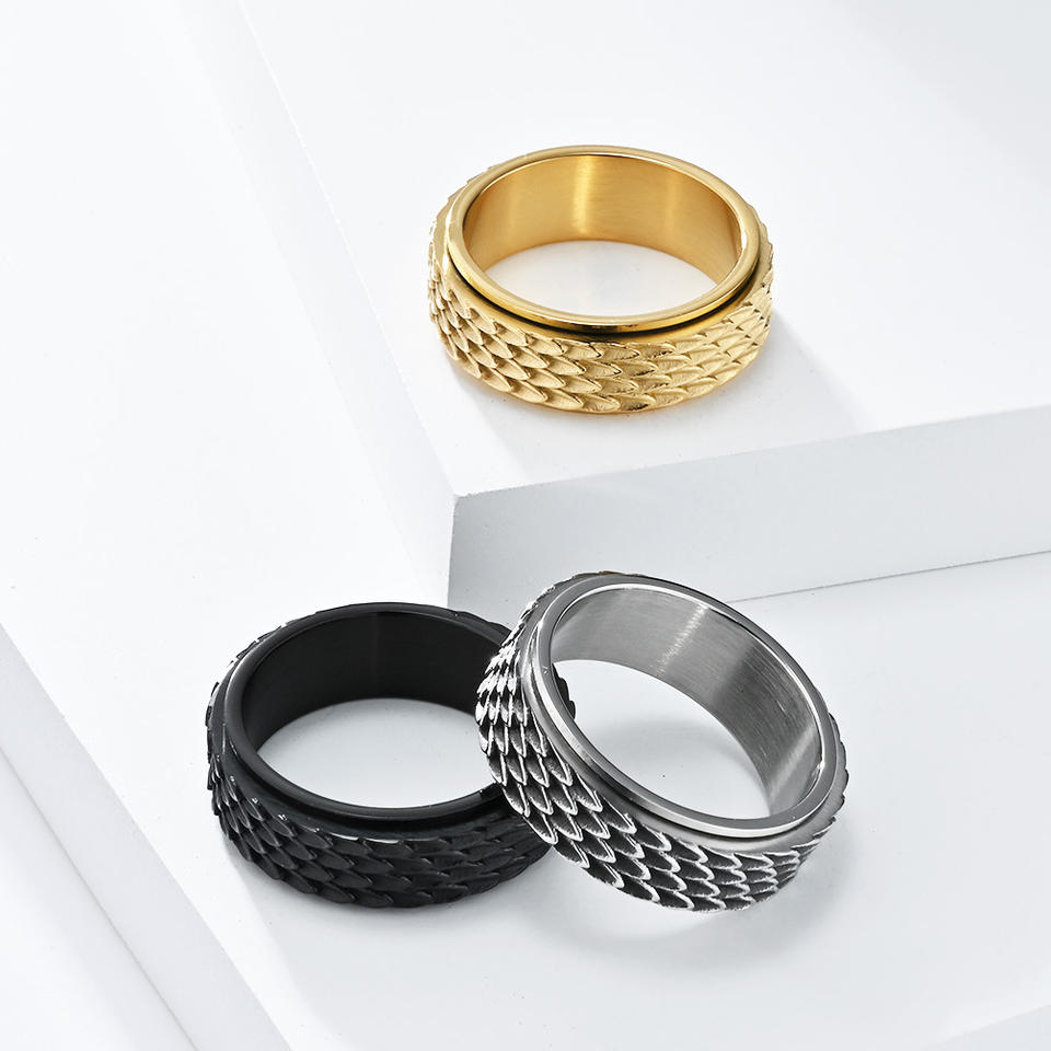 Bague rotative en acier inoxydable effet écaille de dragon, or, noir, argent, bijou unisexe tendance, cadeau, bague pour l'index K R810