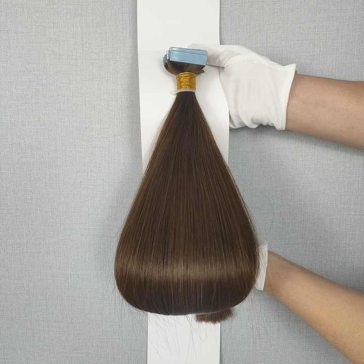 Extensions de cheveux russes à bandes adhésives Dragonbeauty Factory 100% cheveux humains Remy de haute qualité, 10-30 pouces, couleur noir brun naturel
