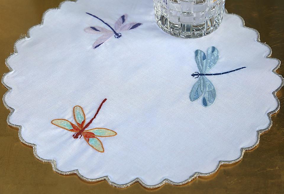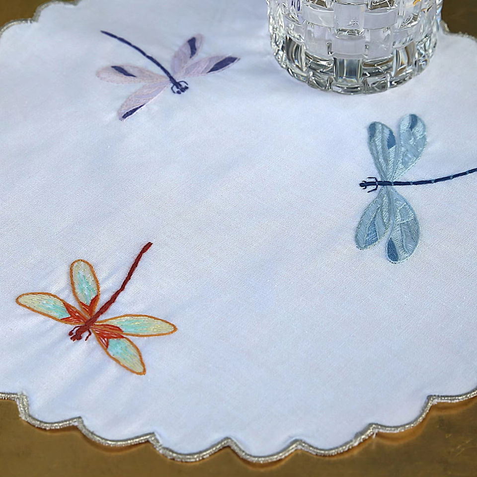 Serviettes de cocktail en lin Dragonfly – 100% lin naturel, serviettes de boisson réutilisables, design élégant inspiré de la nature pour bar, fête