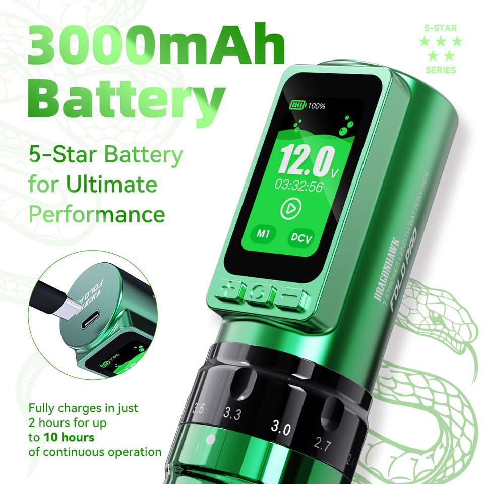 Dragonhawk Fold Pro 3000mAh 2.4-4.2mm Adjustable Stroke Rotary Tattoo Machine Permanent Makeup Machine