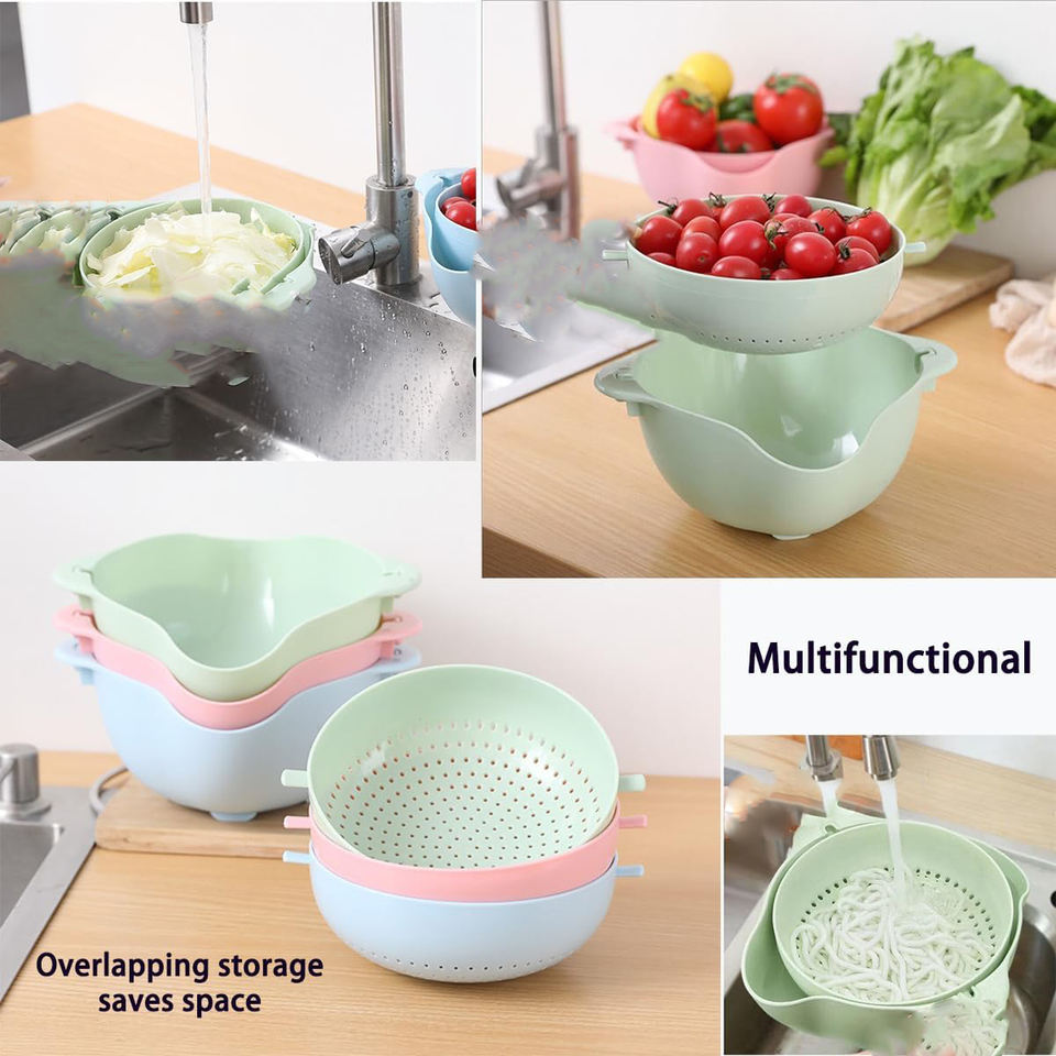 Panier à légumes réversible multicouche 2 en 1 Double couche de nettoyage des légumes et des fruits Passoire de cuisine