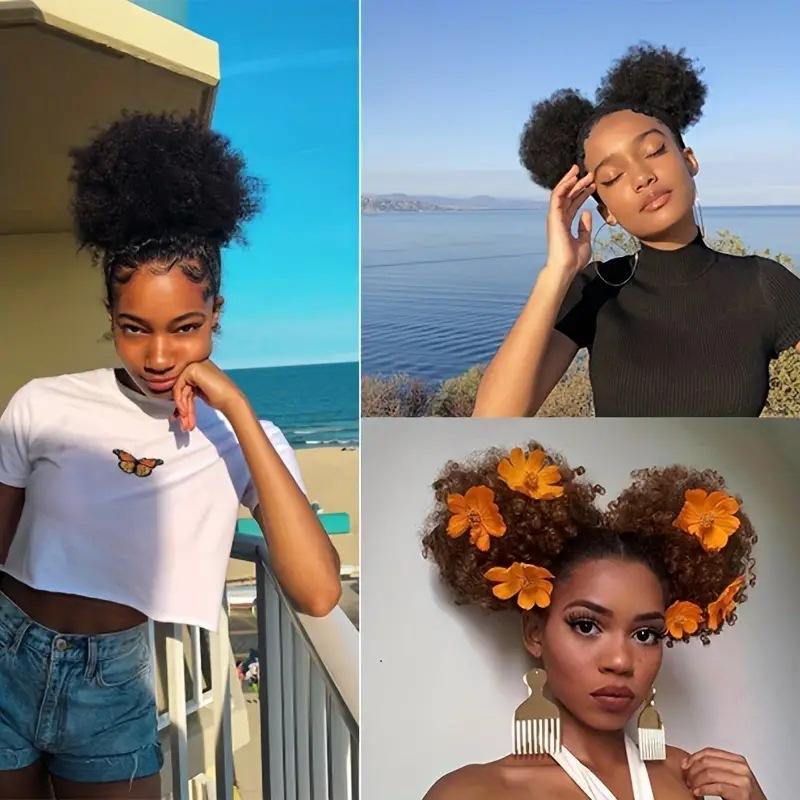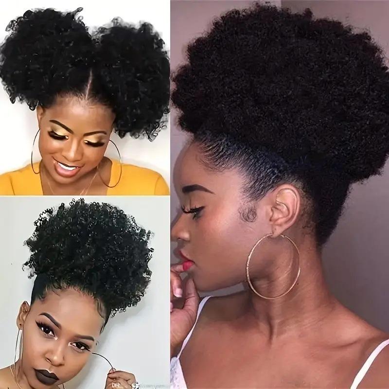 Nom du produit:Chignon Afro court à cordon, chignon synthétique facile à régler
