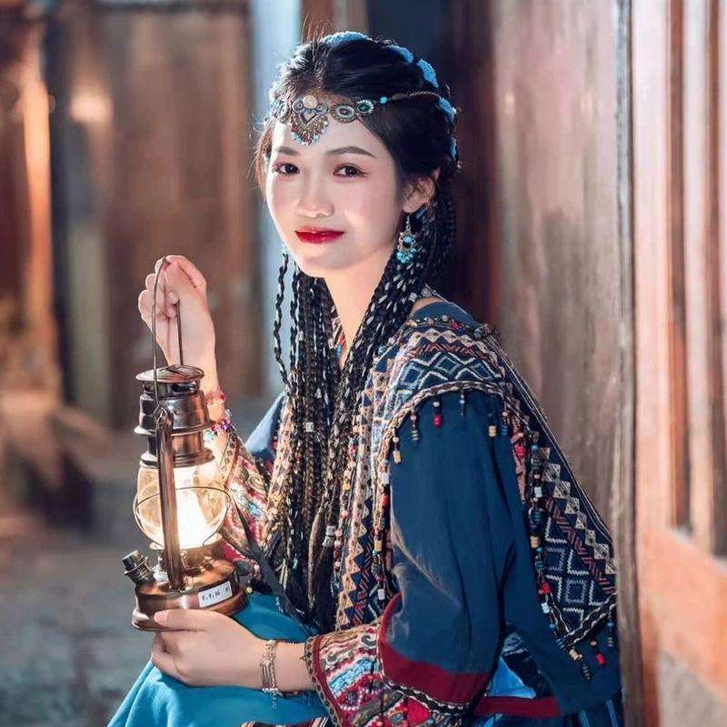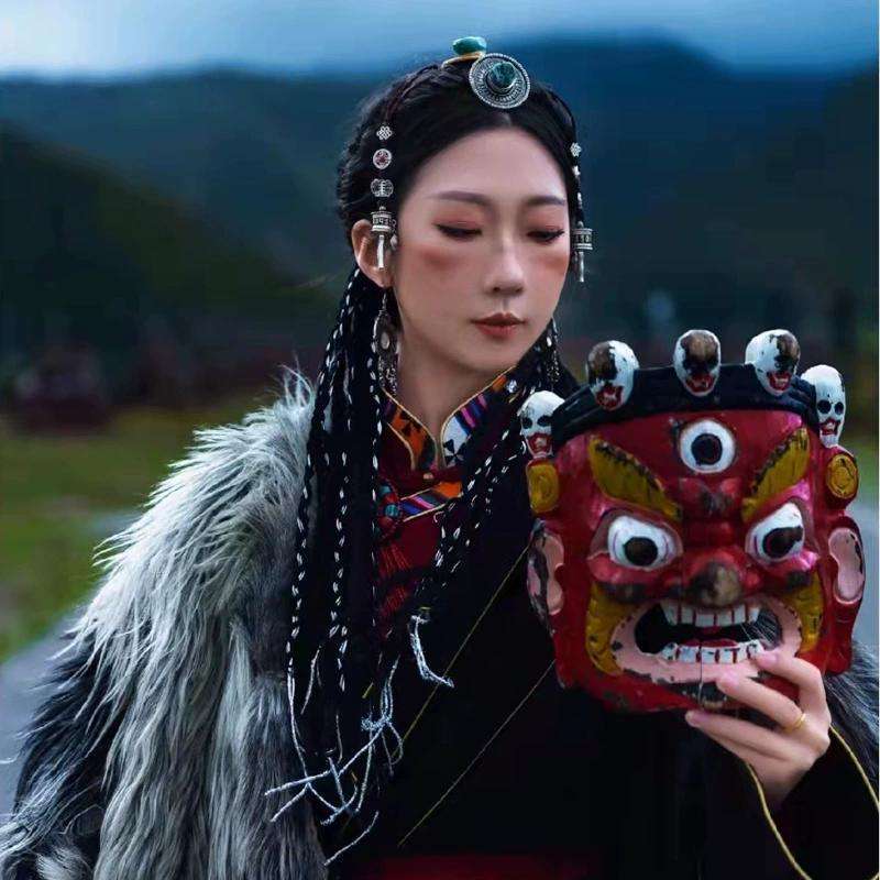 Perruque Dreadlocks longues tressées, queue de cheval, cheveux réalistes à dix brins avec fil argenté, style ancien pour femmes
