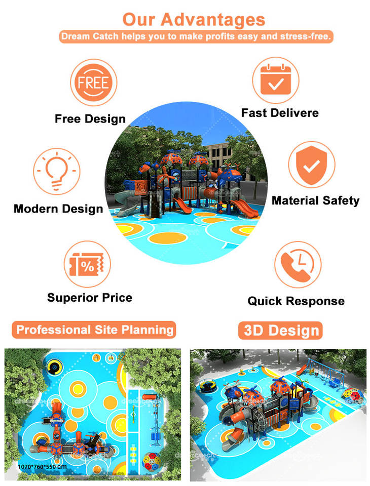 Dream Catch Ensemble de toboggans en plastique en acier inoxydable pour enfants Équipement de terrain de jeu extérieur pour parc