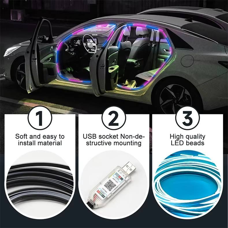 Lumière d'ambiance pour cadre de porte automatique Dream Color 64 couleurs Kit de lumière invisible à LED pour fenêtre de voiture sans fil