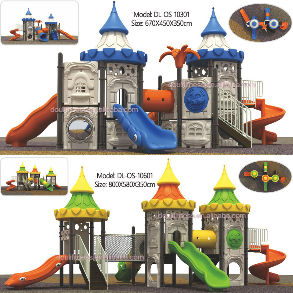 Aire de jeux extérieure personnalisable pour enfants, thème château, avec toboggan et couleurs variables, pour enfants avec Dia. Poteaux verticaux de 89 mm