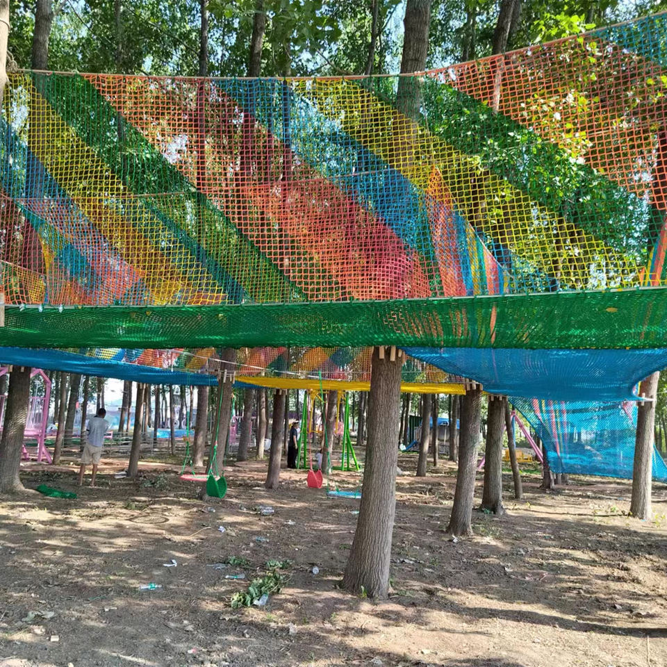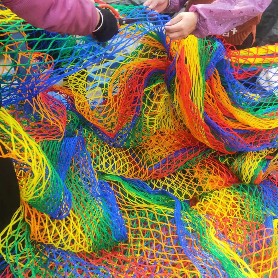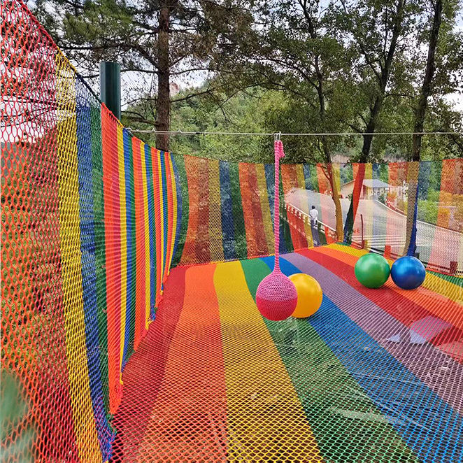 Filet de protection de sécurité coloré arc-en-ciel en polyester de rêve pour aire de jeux d'aventure intérieure et extérieure au crochet