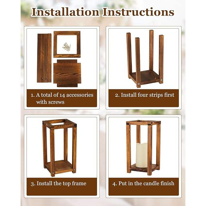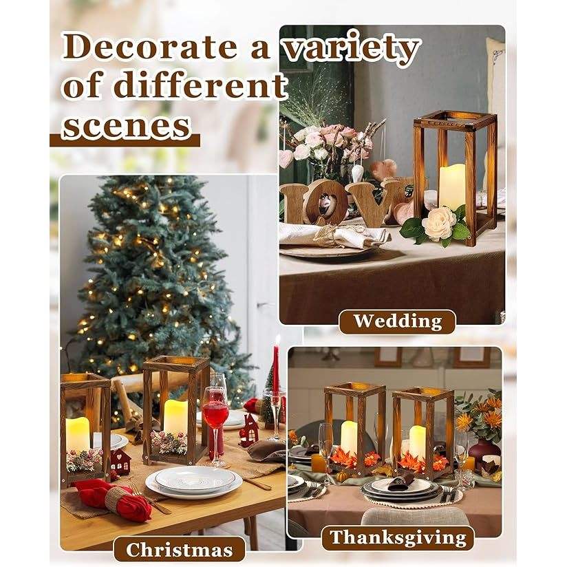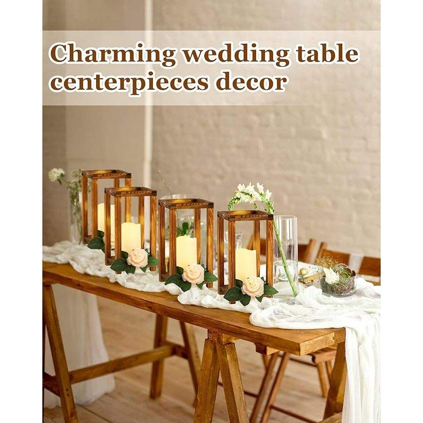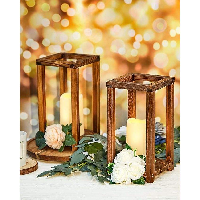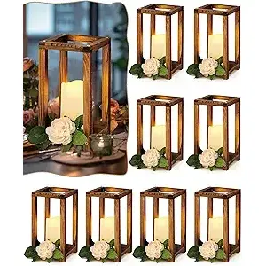 DreamCraft 16-Piece Customizable Wedding Lantern Centerpiece Set Includes 8 Rustic Wooden Lanterns 8 Flameless Candle Holders