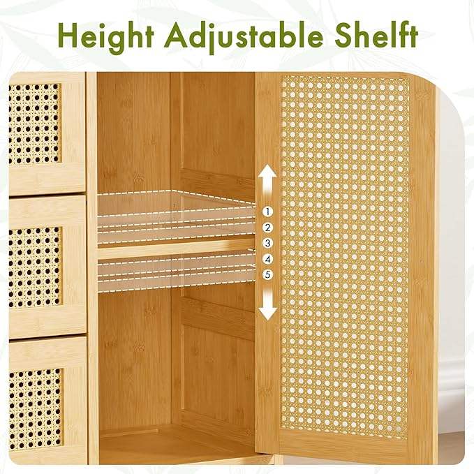 DreamCraft Amazer Bamboo Sideboard Buffet Cabinet Adjustable MDF Shelf for Kitchen Living Room Entryway Home Bar (Vietnam