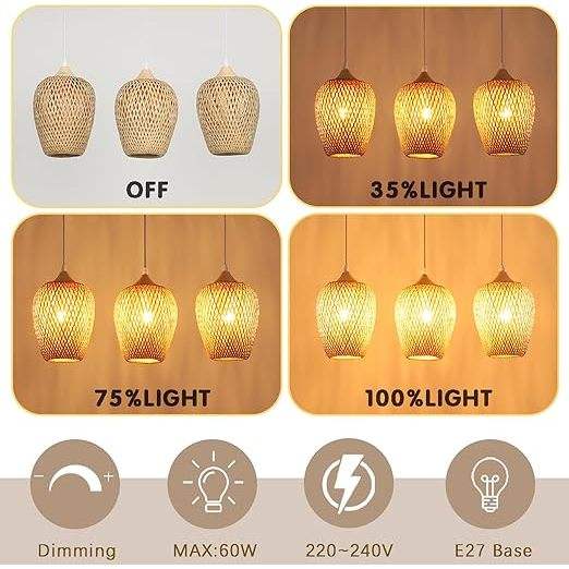 Lampe suspendue à 3 lumières en bambou tissé à la main DreamCraft, luminaire décoratif pour plafond, idéal pour bar, couloir ou décoration de ferme, origine Vietnam