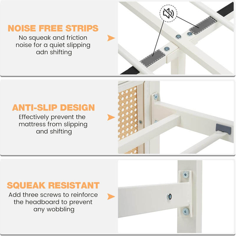 DreamCraft Cadre de lit en rotin avec tête de lit élégante en rotin Écologique Fabriqué au Vietnam