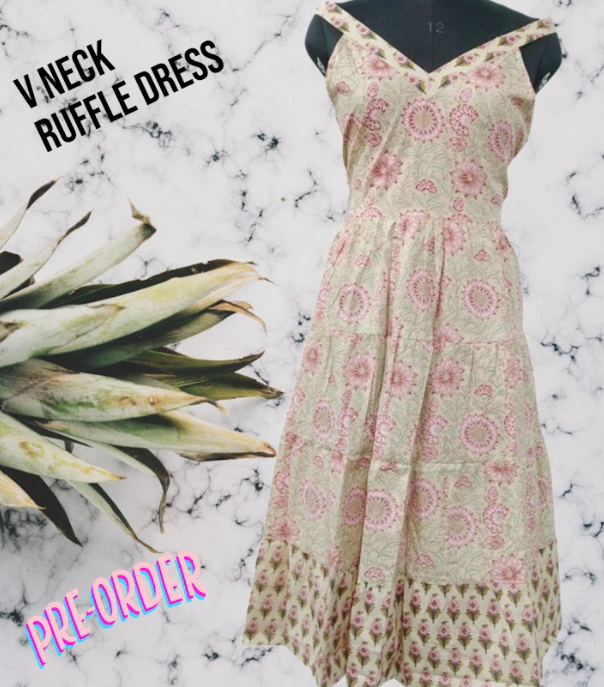 ROBE À VOLANTS COL V