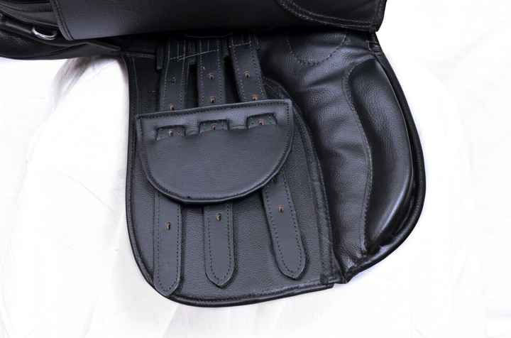 Selle de dressage pour l'équitation de tous les jours en cuir poli et arbre en plastique Siège confortable à large rabat offrant un ajustement sûr