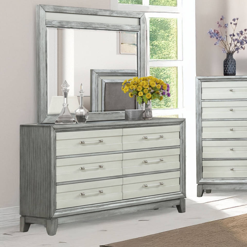 Commode avec miroir, table de chevet à 2 tiroirs, ensemble de meubles de chambre à coucher