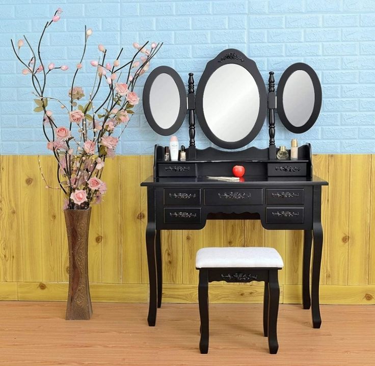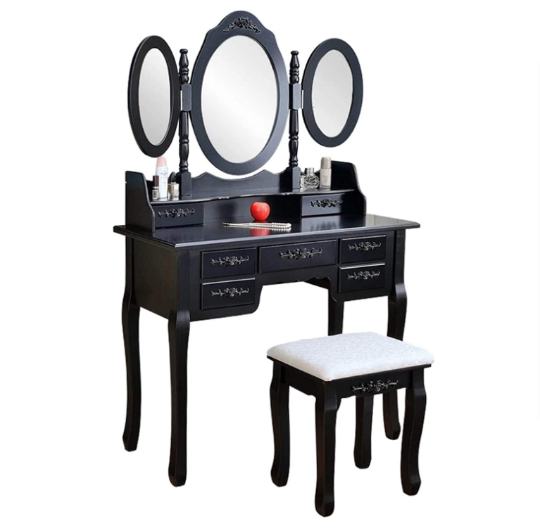 Coiffeuse Pliable 3 Miroirs avec 7 Tiroirs Coiffeuse Simpliste Reine et Dressing