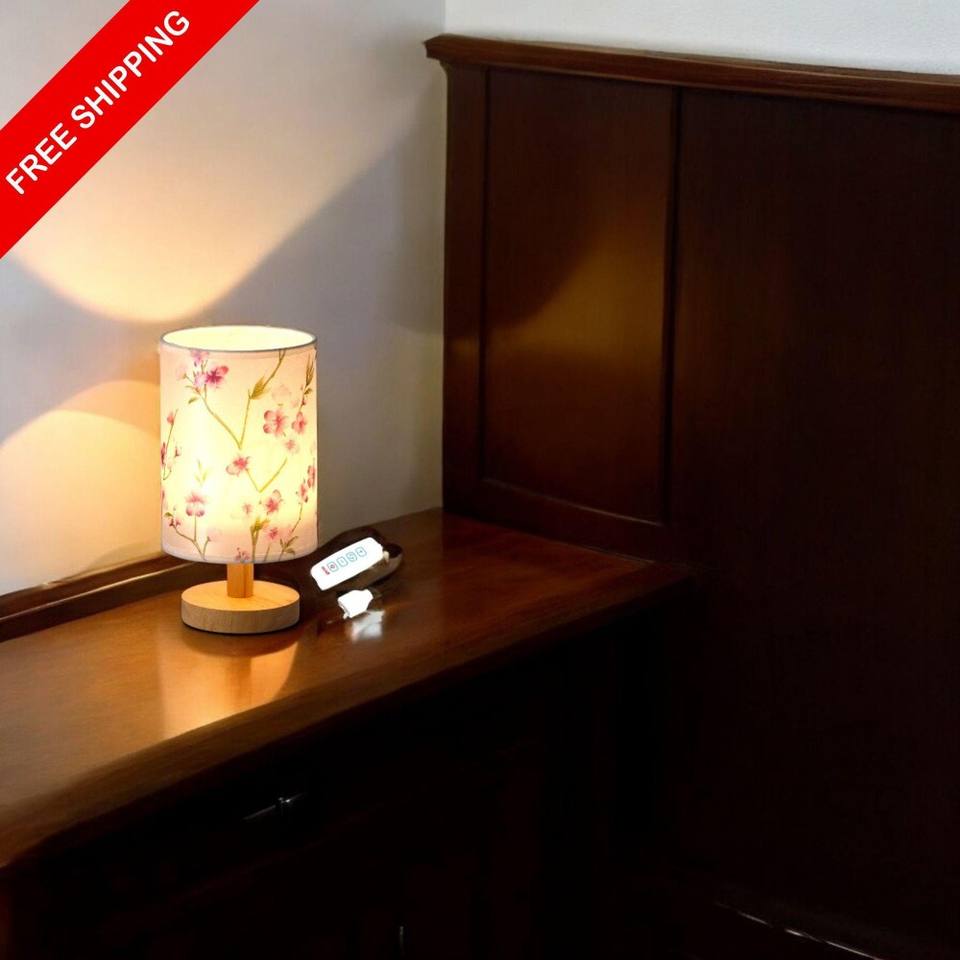 Lampe de table à fleurs séchées 5WLed Lampe de chevet à fleurs sous pression Base en bois Veilleuse à fleurs Décor de pépinière