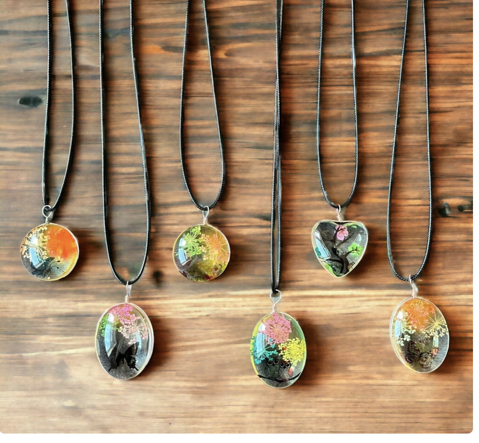 Collier pendentif en forme de visage abstrait en résine Fleur séchée en résine Collier de fleur sèche époxy pour femmes d'Inde