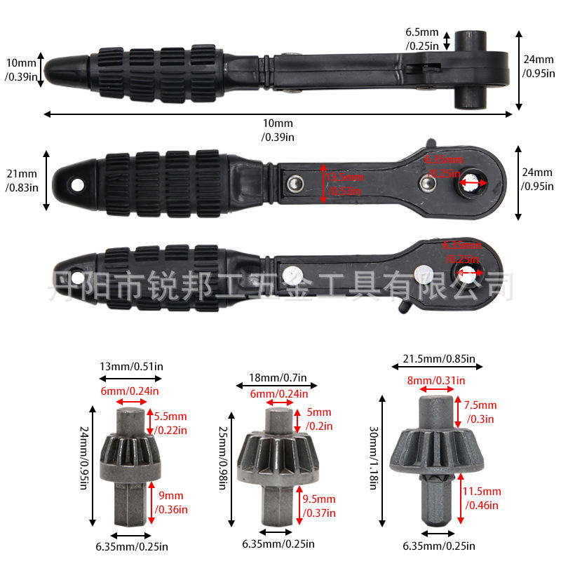 Specifications and Models: Black 2-in-1 H-type key clip ratchet wrench with 3 gear sizes [104g]