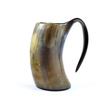 Customizable Size Natural Horn Mug Viking Tankard Beer Mug with Angel Style Hand Grip for Drinking