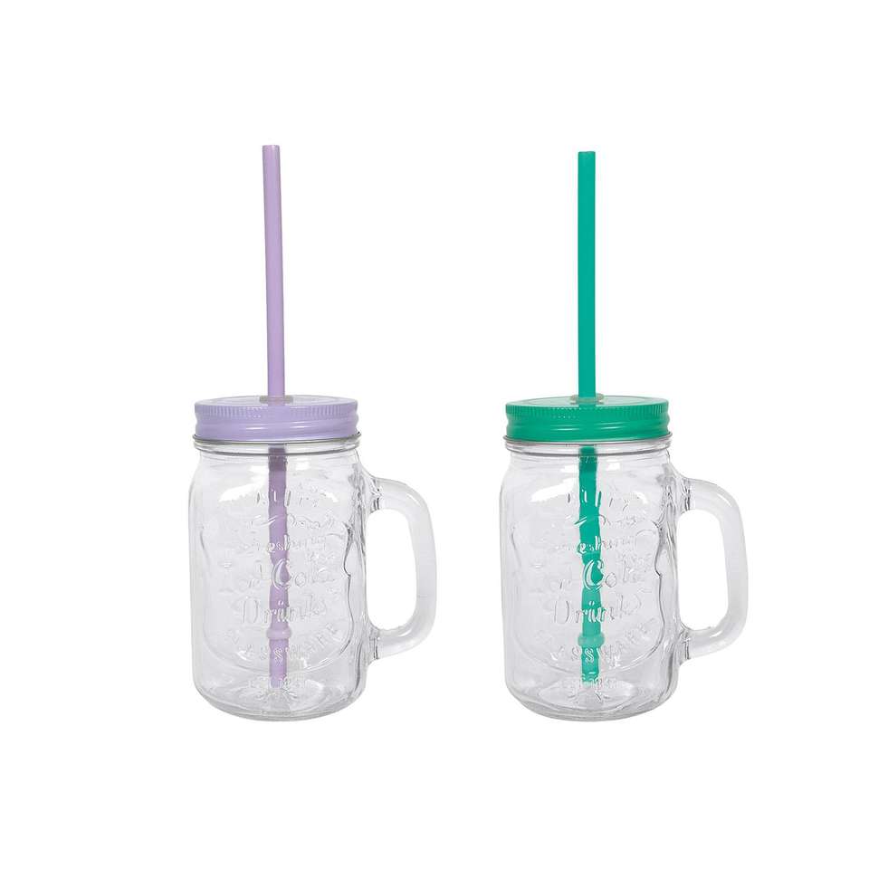 Drinking glass with lid and straw 500ml