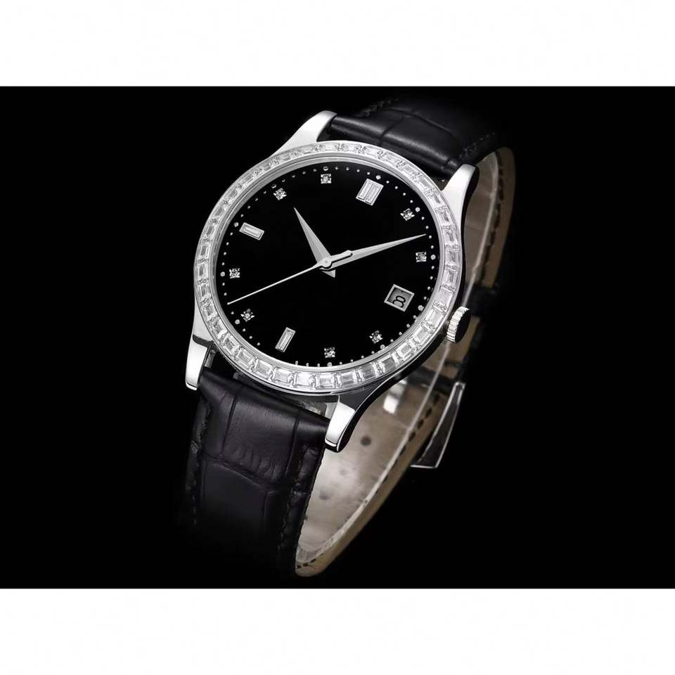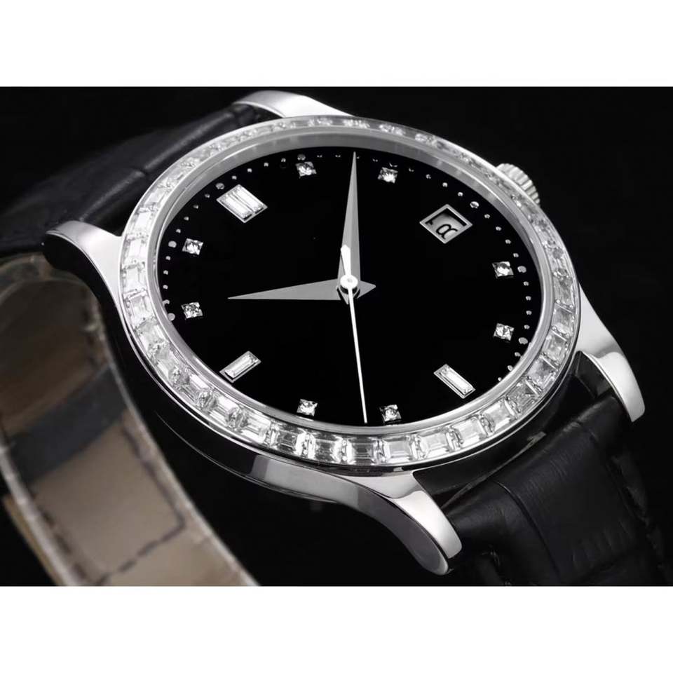 Montre mécanique de luxe automatique en cuir de vachette pour femmes et hommes, avec mouvement 324 de haute qualité, lunette sertie de diamants et calendrier, idéale pour le dropshipping