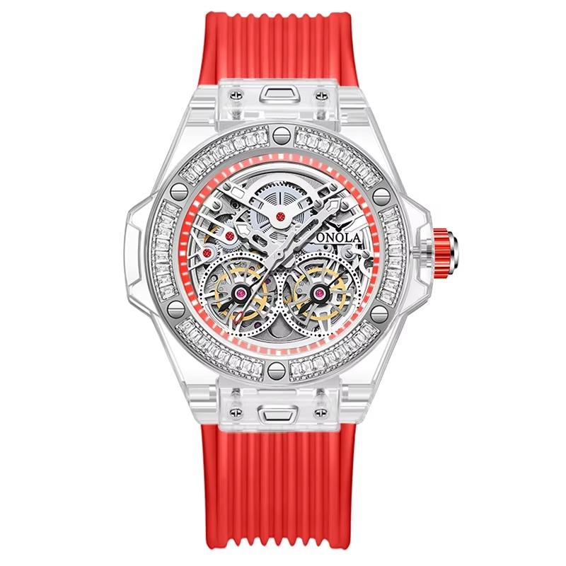 Montre automatique pour homme de luxe transparente, étanche, de haute qualité, avec bracelet en caoutchouc, personnalisable, livraison directe