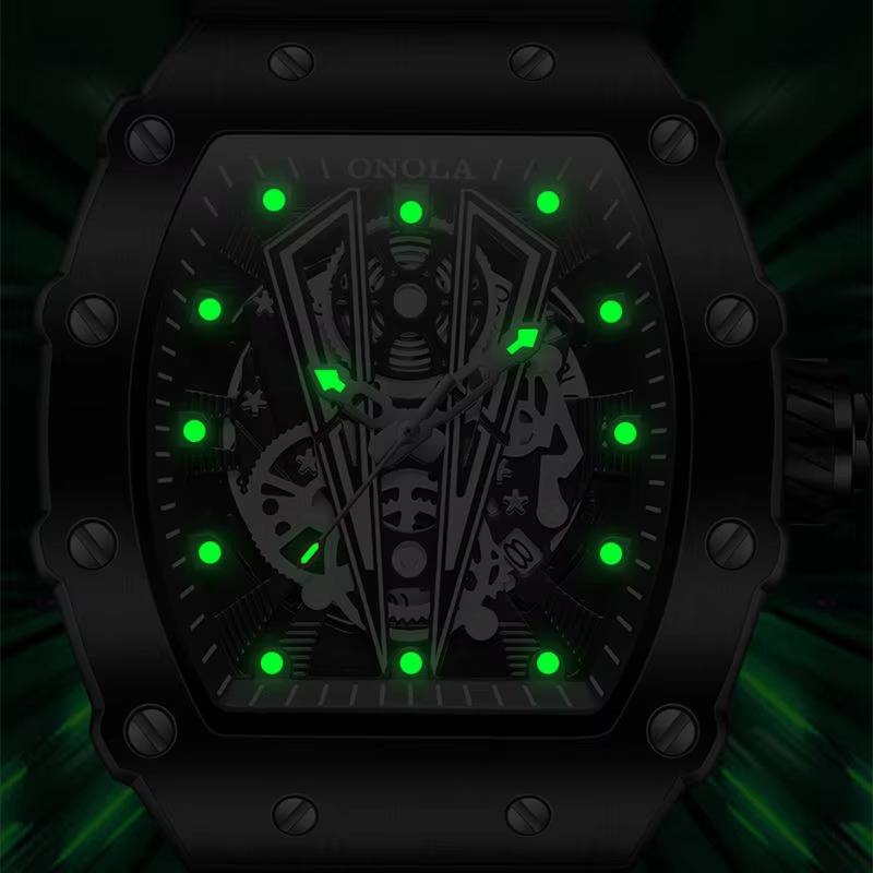 Drioshipping Montre à quartz pour hommes Offre Spéciale Casual Waterproof Alloy Creative Silicone Band 43mm Hollow Character New Fashionable