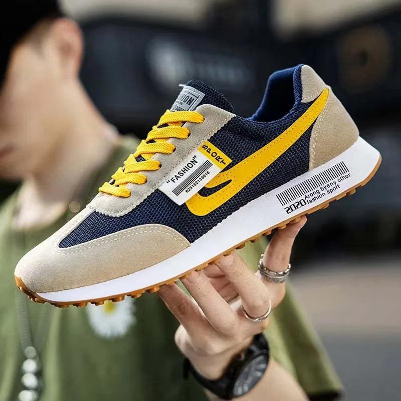 Drioshipping Hommes Printemps Mode Chaussures de course Versatile Sports Sneakers avec Tissu Respirant Surface Doublure en Cuir Véritable