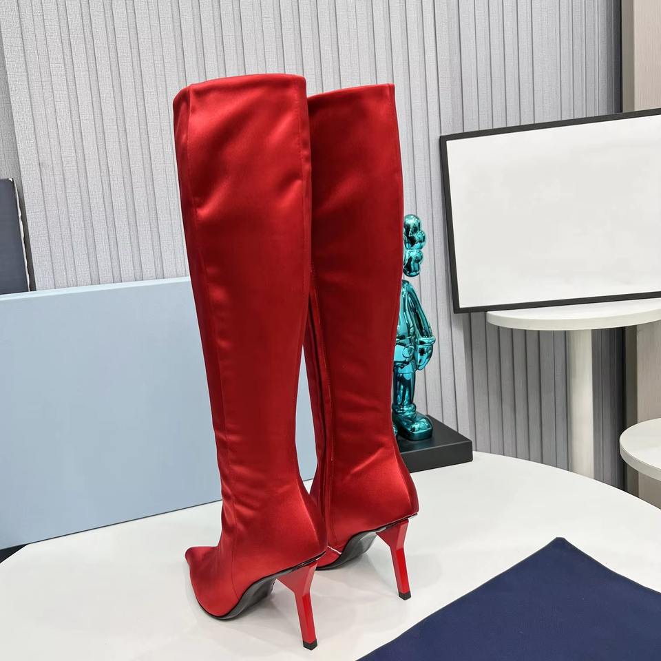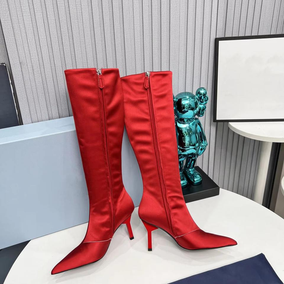 Drioshipping Women Boots Shoes Genuine Leather High Heels Waterproof Designer Red Genuine Leather Long Boots for Women