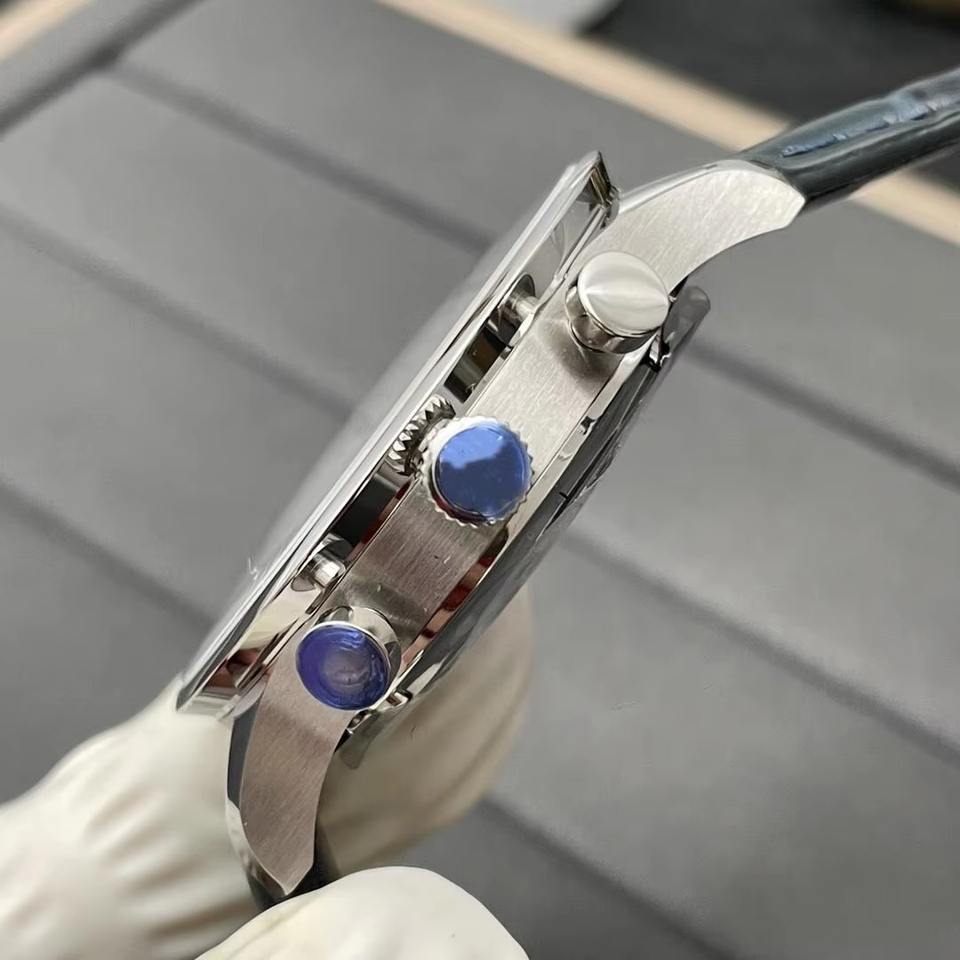 Drioshipping Usine ZF Montre Homme 41mm Cadran Argent Chronographe Marine Bracelet en Cuir Cristal de Saphir Style Portugais ETA